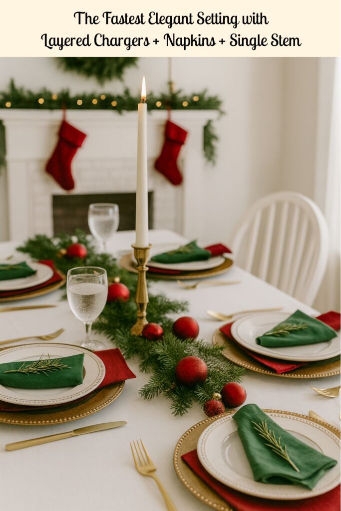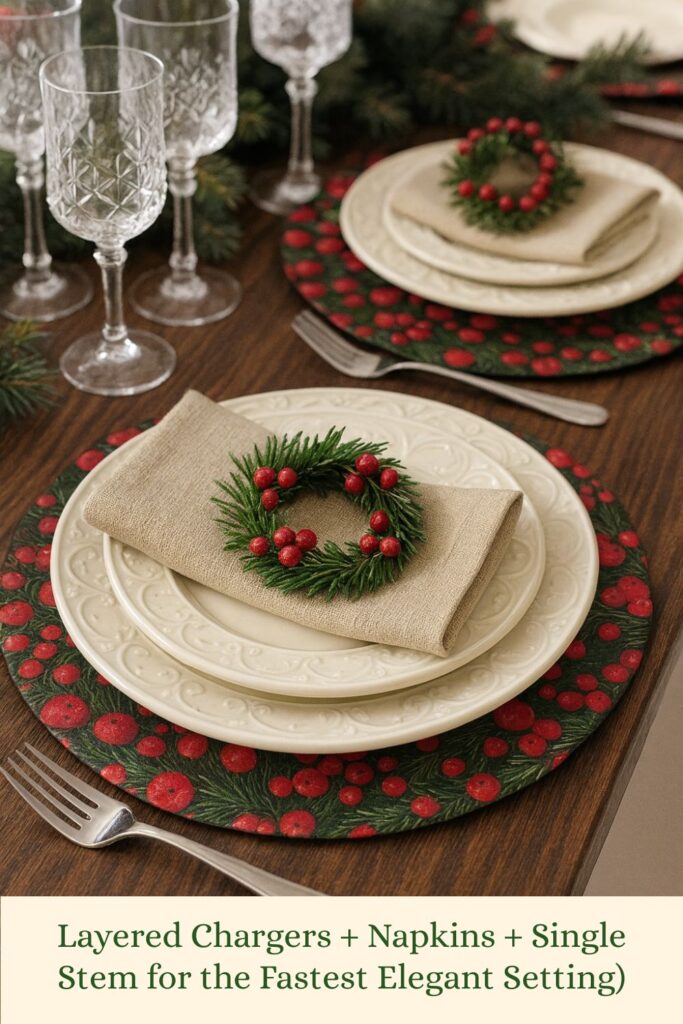3. Layered Chargers + Napkins + Single Stem (The Fastest Elegant Setting)