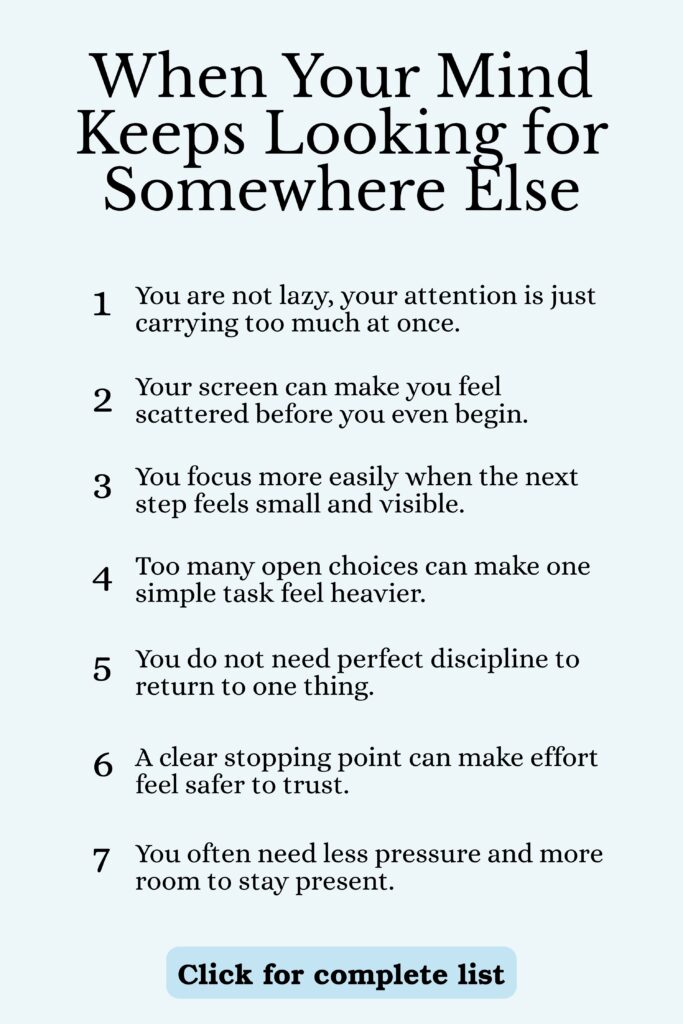 When your screen is full of tabs, messages, saved articles, open docs, and half-finished searches, your attention has nowhere clean to land. Even if you know what you should be doing, your brain is still sorting through too many possible next moves.