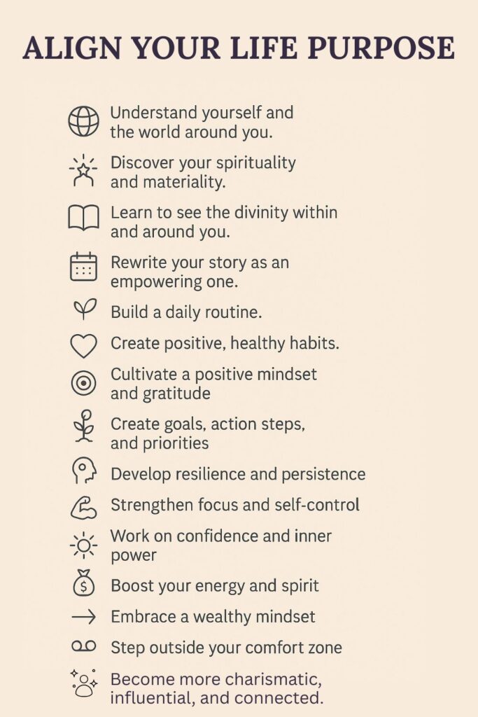 12 Work on self-esteem, confidence, motivation, inner power, effortless action and clear vision.