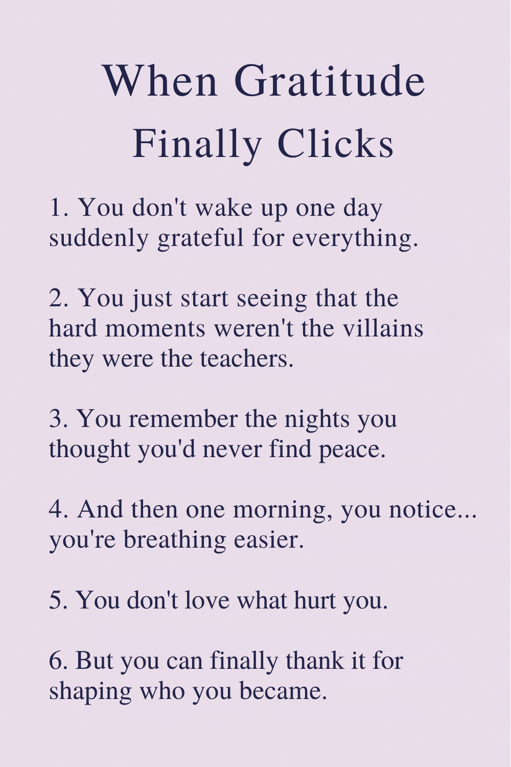 So the gist of this article is that when you are grateful for all the good and all the bad in your life in the case of the bad you break the cycle because you realize the things you dislike make the things you like so MUCH BETTER.