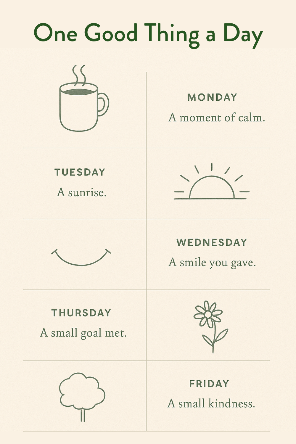 Three) Start a daily gratitude journal. Aim to find little things you’re grateful for, such as a good cup of coffee, a pretty sunrise, or nice weather.