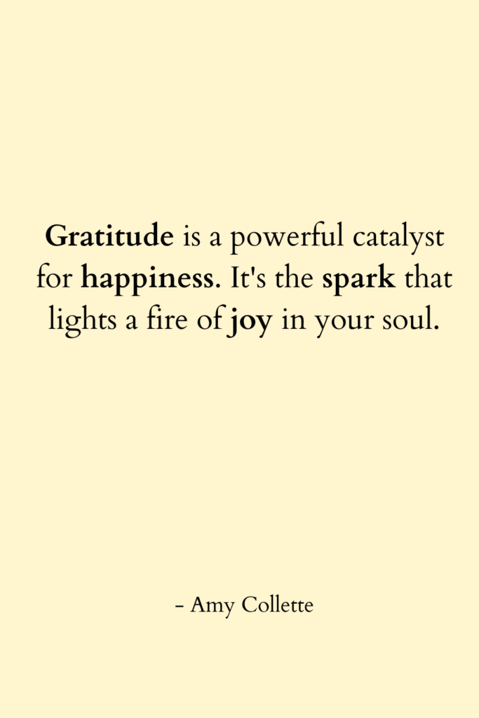 #8 “Gratitude is a powerful catalyst for happiness. It’s the spark that lights a fire of joy in your soul.” – Amy Collette