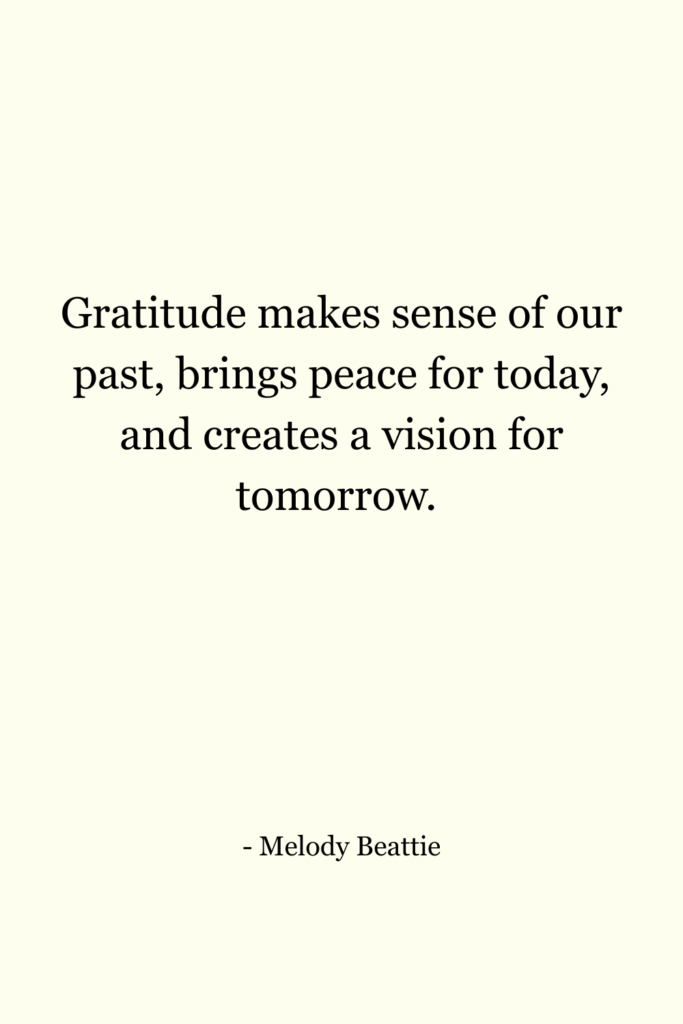 #10 “Gratitude makes sense of our past, brings peace for today, and creates a vision for tomorrow.” – Melody Beattie