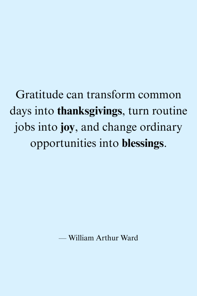 #7 “Gratitude can transform common days into thanksgivings, turn routine jobs into joy, and change ordinary opportunities into blessings.” – William Arthur Ward