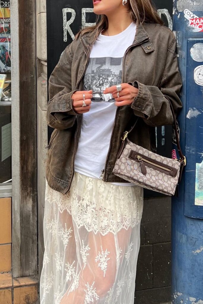 This pairing works perfectly for brunches, late lunches, or wandering through a market with your favorite people. The lace detail adds just enough softness to feel styled, while the casual pieces around it keep things grounded and wearable.