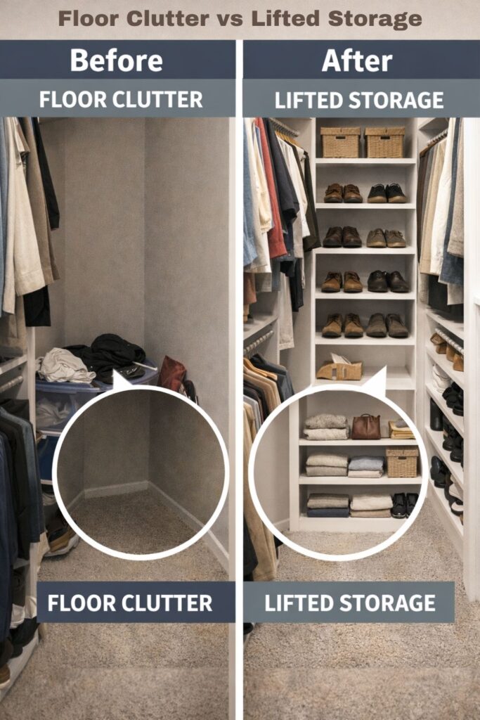 The fix isnโt more bins. Itโs rethinking flow and using corners intentionally. Below is a step-by-step makeover plan that focuses on layout changes that actually work, especially in tight walk-in spaces.