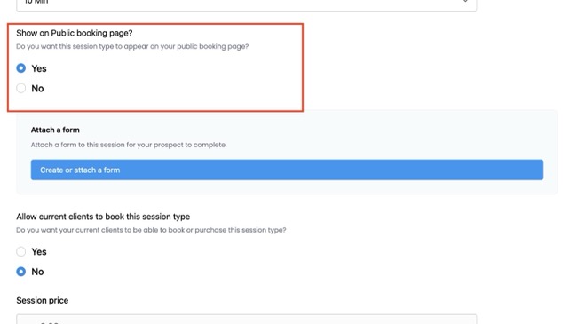 - Only sessions marked “Yes” will appear on your Public Booking Page.