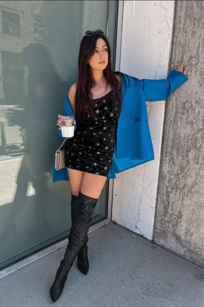 We wore this for a birthday dinner and felt like the main character all night. Itโs sparkly, sleek, and hugs you in all the right places.