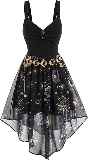1. FEAPHY Gothic Galaxy Sleeveless Dress โ Purple
