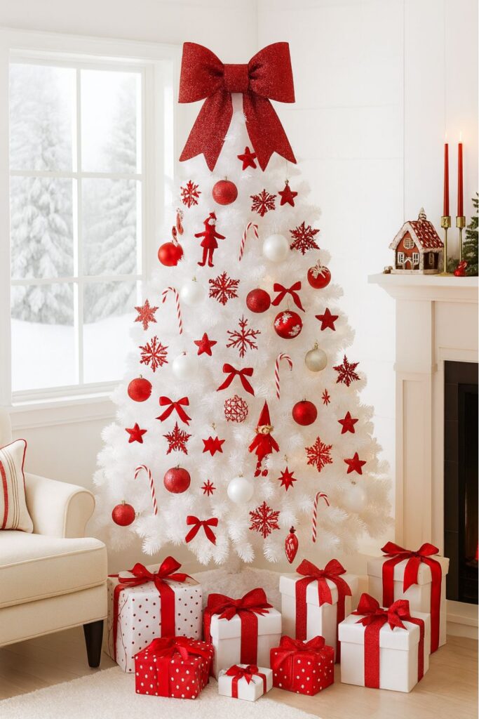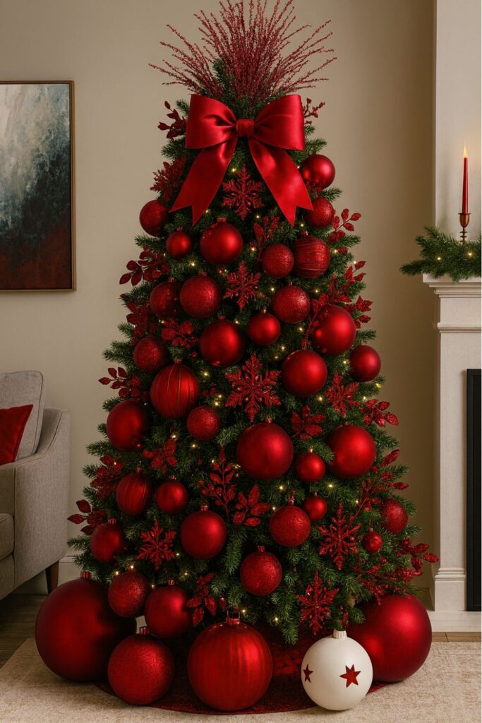 Red palettes bring energy and nostalgia to your tree, making them perfect for family-centered spaces. Balancing rich red tones with neutrals or complementary accents keeps the look polished.