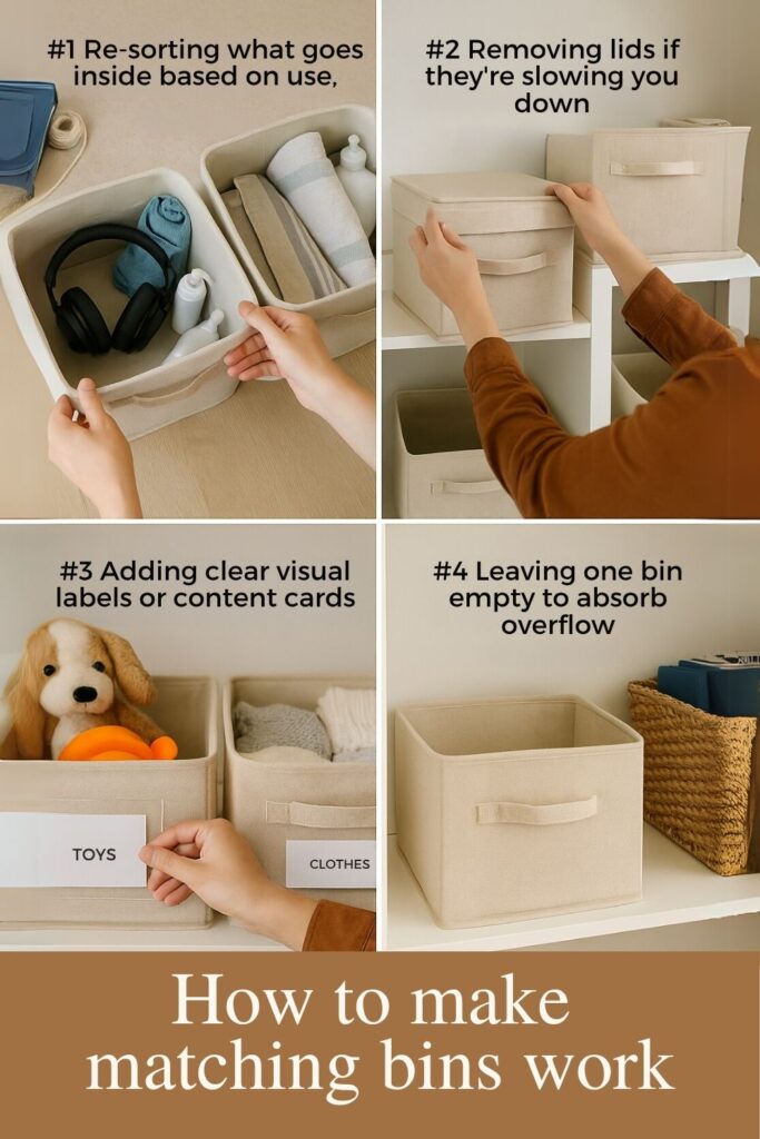 Already invested in matching bins? Don’t worry—you can still make them work. Start by:
