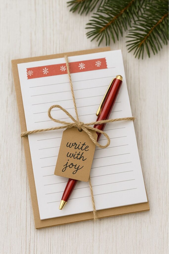 Create a custom bundle using plain notepads decorated with washi tape, hand-lettered titles, or printed quotes that reflect your coworkerโs personality. Add sticky notes and a smooth gel pen wrapped in ribbon, transforming everyday tools into a charming productivity kit.
