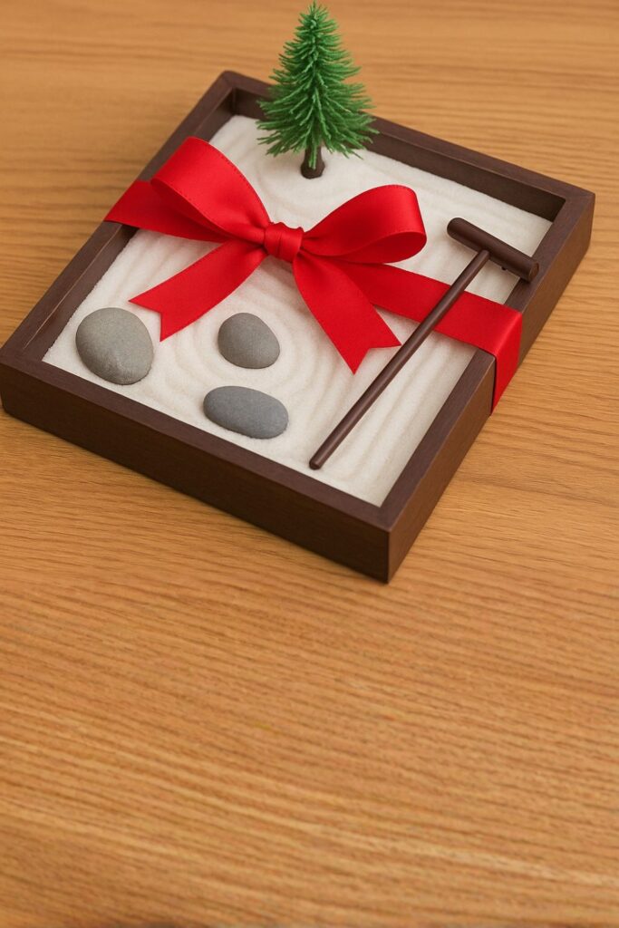 Use a shallow wooden tray filled with smooth sand, then add small stones, crystals, or even dried flowers. Include a tiny wooden rake so they can draw calming patterns whenever they need to slow down.