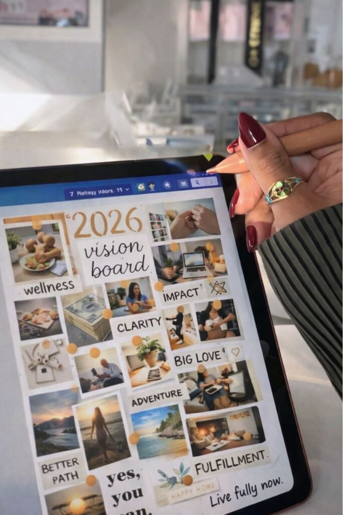 Donโt copy the images. Notice the emphasis on structure and space. If your goal is a calmer, more controlled year, this type of board works because it normalizes steadiness rather than intensity.