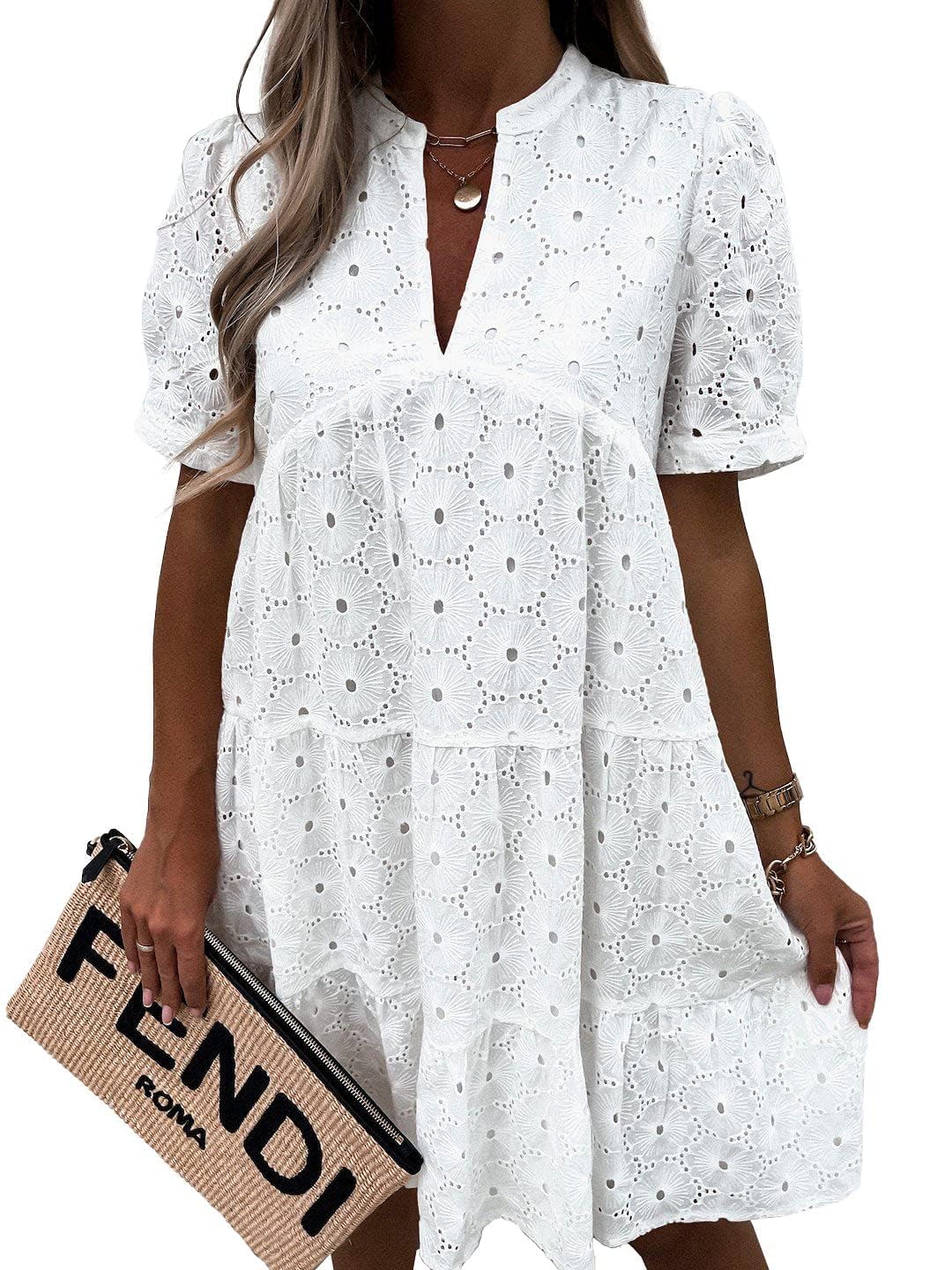 chouyatou Women’s Summer Loose Floral Lace Eyelet Dress