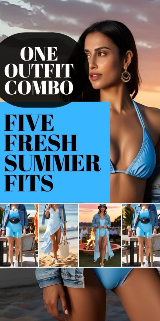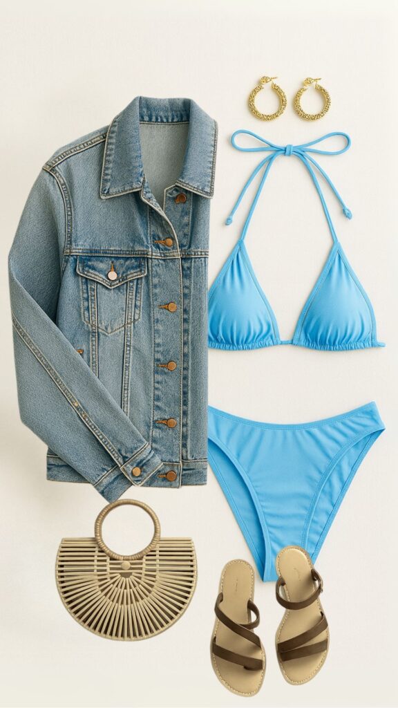 Some outfit combos just clickโand a light blue swimsuit paired with a classic denim jacket is one of them. Itโs beachy but not too casual, easy to layer, and works well beyond the water.