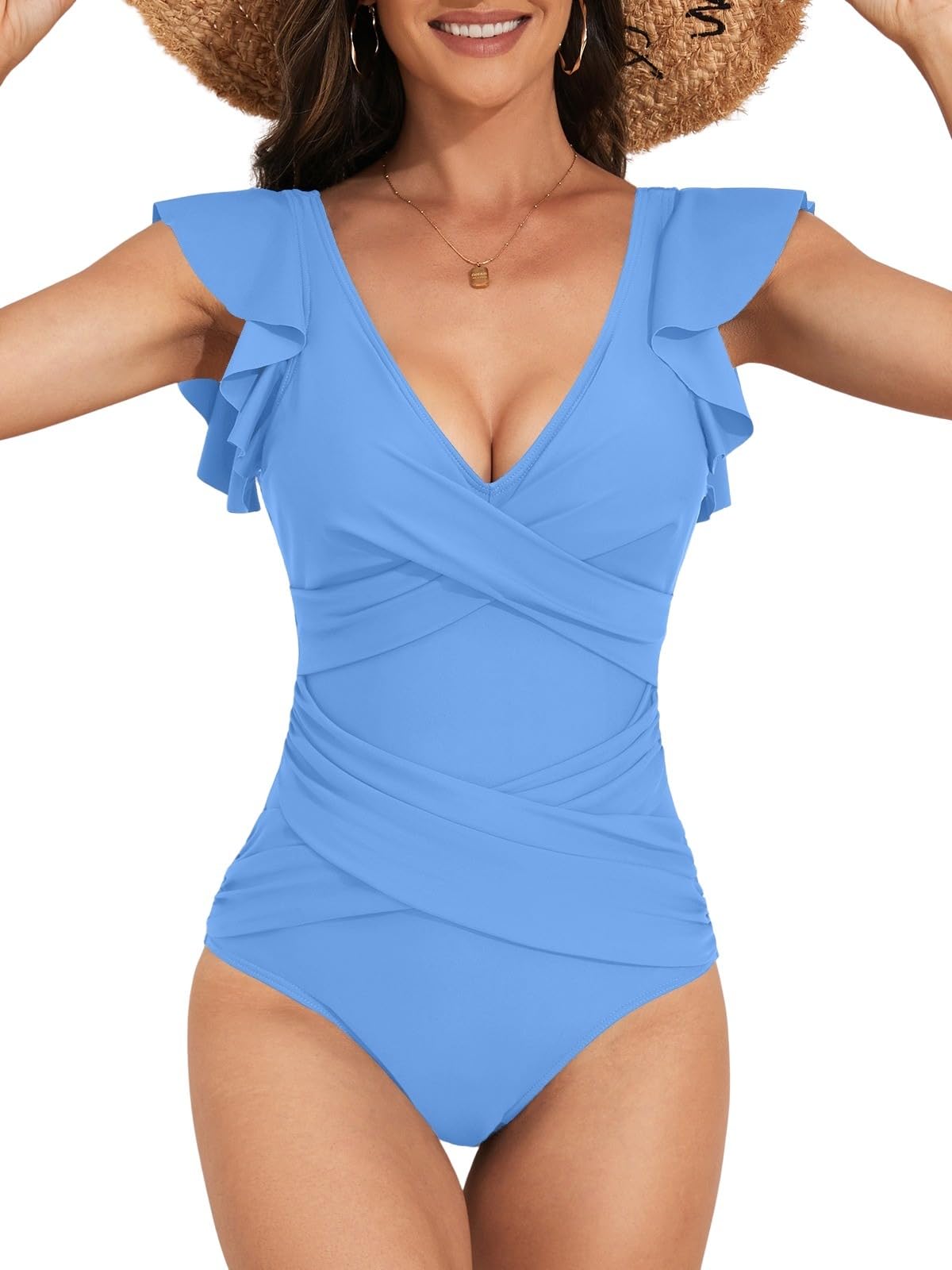 The tummy control feature makes a big difference for us. We like how the ruched front helps hide our midsection without feeling too tight. It holds us in gently while still allowing us to move around easily.