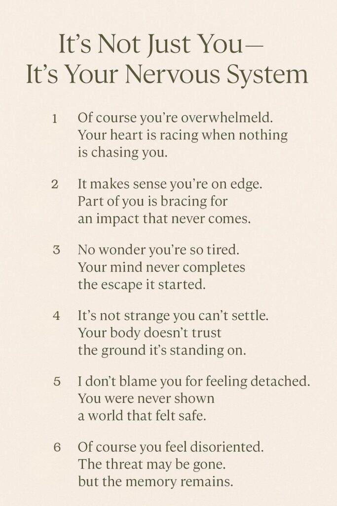 And when that keeps happening, your baseline shifts. You live in hypervigilance. Even the calmest day feels tense. Even the smallest shift feels personal. You’re not weak—you’re exhausted.